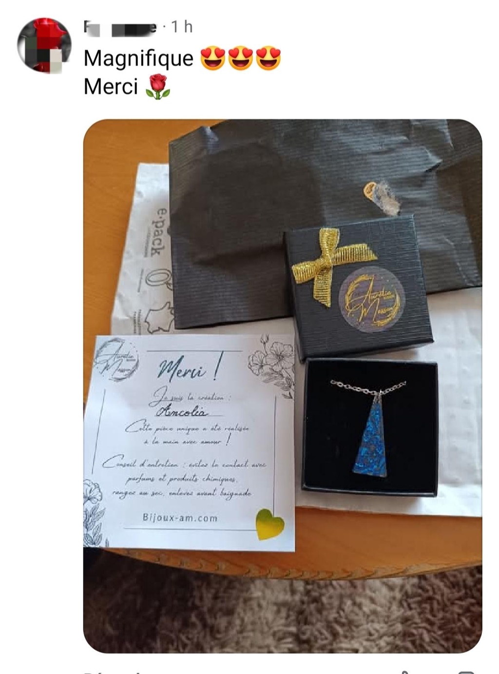 Les bijoux sont conçus en résine légère et résistante, choisie pour sa durabilité. Une attention particulière est portée à chaque détail afin de proposer des créations originales, élégantes et agréables à porter.