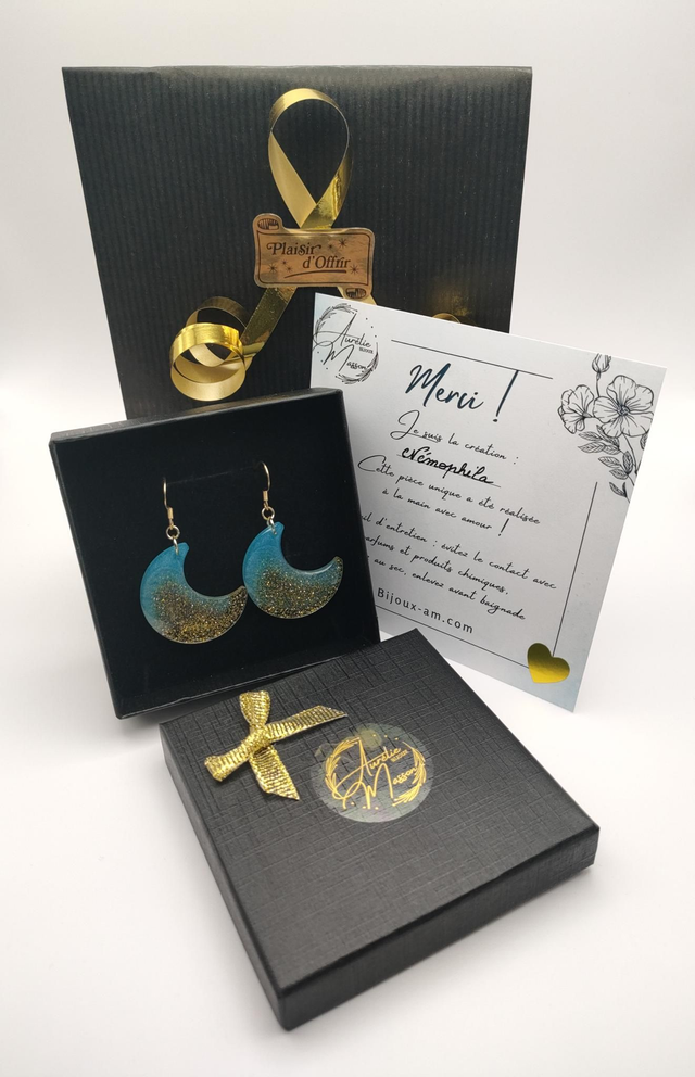 ✨ Une pièce unique, réalisée à la main en résine époxy pour garantir à vos oreilles la légèreté, et des apprêts en acier inoxydable qui ne noircissent pas avec le temps !