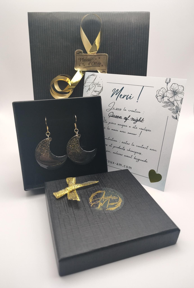✨ Une pièce unique, réalisée à la main en résine époxy pour garantir à vos oreilles la légèreté, et des apprêts en acier inoxydable qui ne noircissent pas avec le temps !